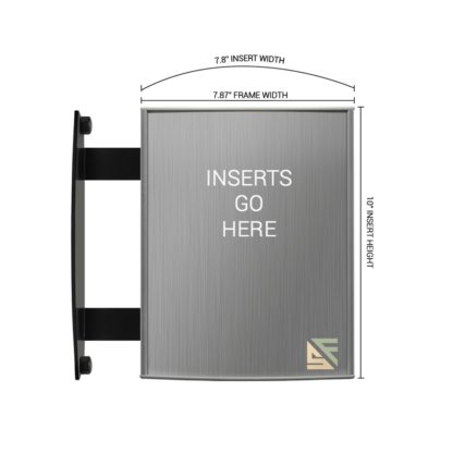 The WBS6 is an anodized aluminum, double-sided, modular sign frame with a left to right curve that comes with two removable, non-glare acrylic lenses. Ideal for office buildings, healthcare facilities, churches and a variety of other locations. Used to convey location and direction to reach a specific location, hallway signs typically include restroom, exit, stair and various other destinations to complement new or existing wayfinding signage. All curved hallway signs are available in brushed silver and black. The end caps are available in the same two metal finishes or in high-impact grey or black plastic.