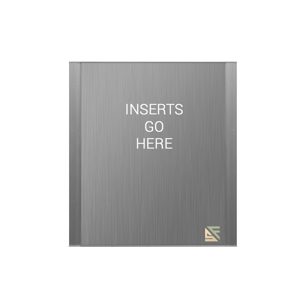 The WFFP166 is a flat, modular sign frame that comes with a removable, non-glare acrylic lens.  Ideal for offices, hospitals, campuses and a variety of other locations.   All Vista Square flat sign frames are made from anodized aluminum in either brushed silver or black with high-impact grey or black plastic end caps from which to choose.